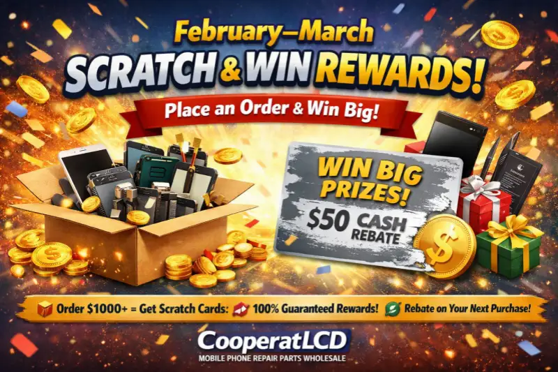 As the new year begins and the repair market gradually picks up, CooperatLCD Mobile Phone Repair Parts Wholesale is launching a limited-time Scratch Card promotion from February to March to thank all our valued partners for their continued support.