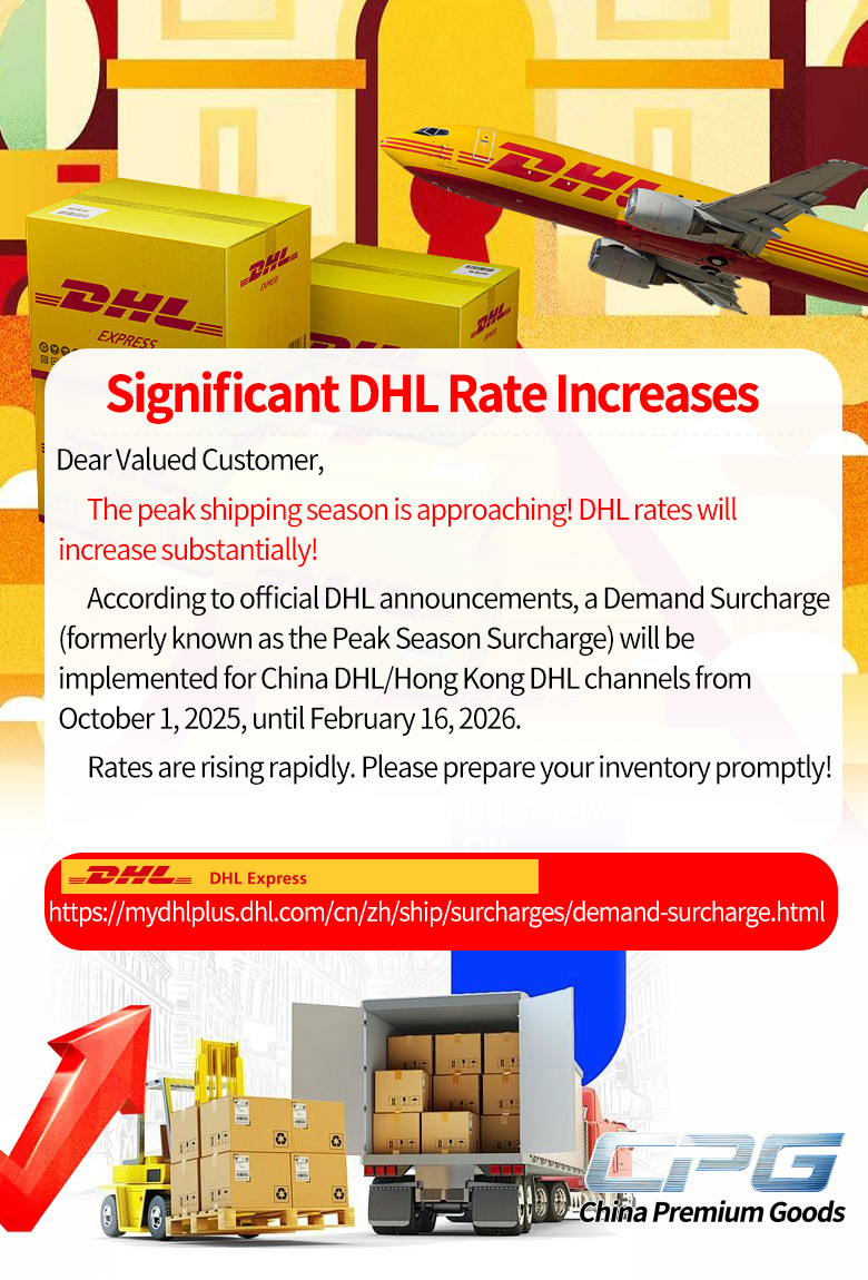 According to official DHL announcements, a Demand Surcharge(formerly known as the Peak Season Surcharge) will be implemented for China DHL / HongKong DHL channels from October 1, 2025, until February 16, 2026.