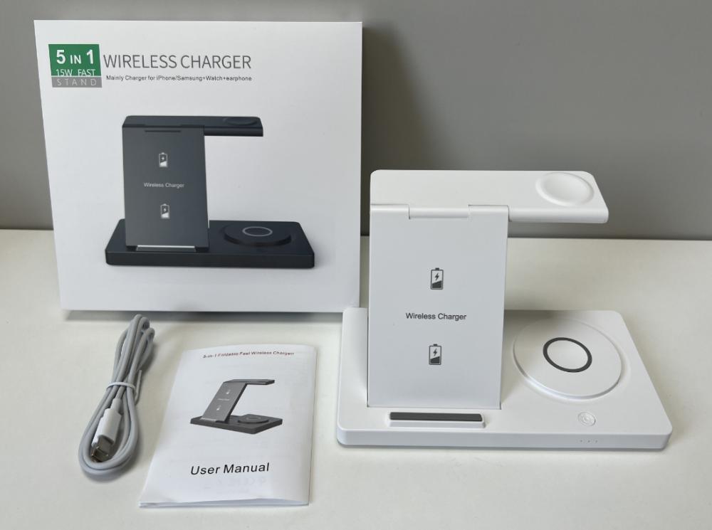 5 in 1 15W Dual-Coil Foldable Wireless Charger