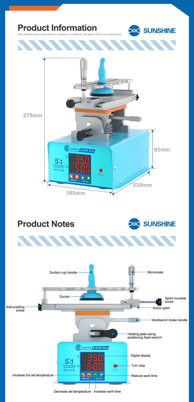 The temperature can be adjusted up to 150°C, and the straight screen and curved screen can be used in one machine.